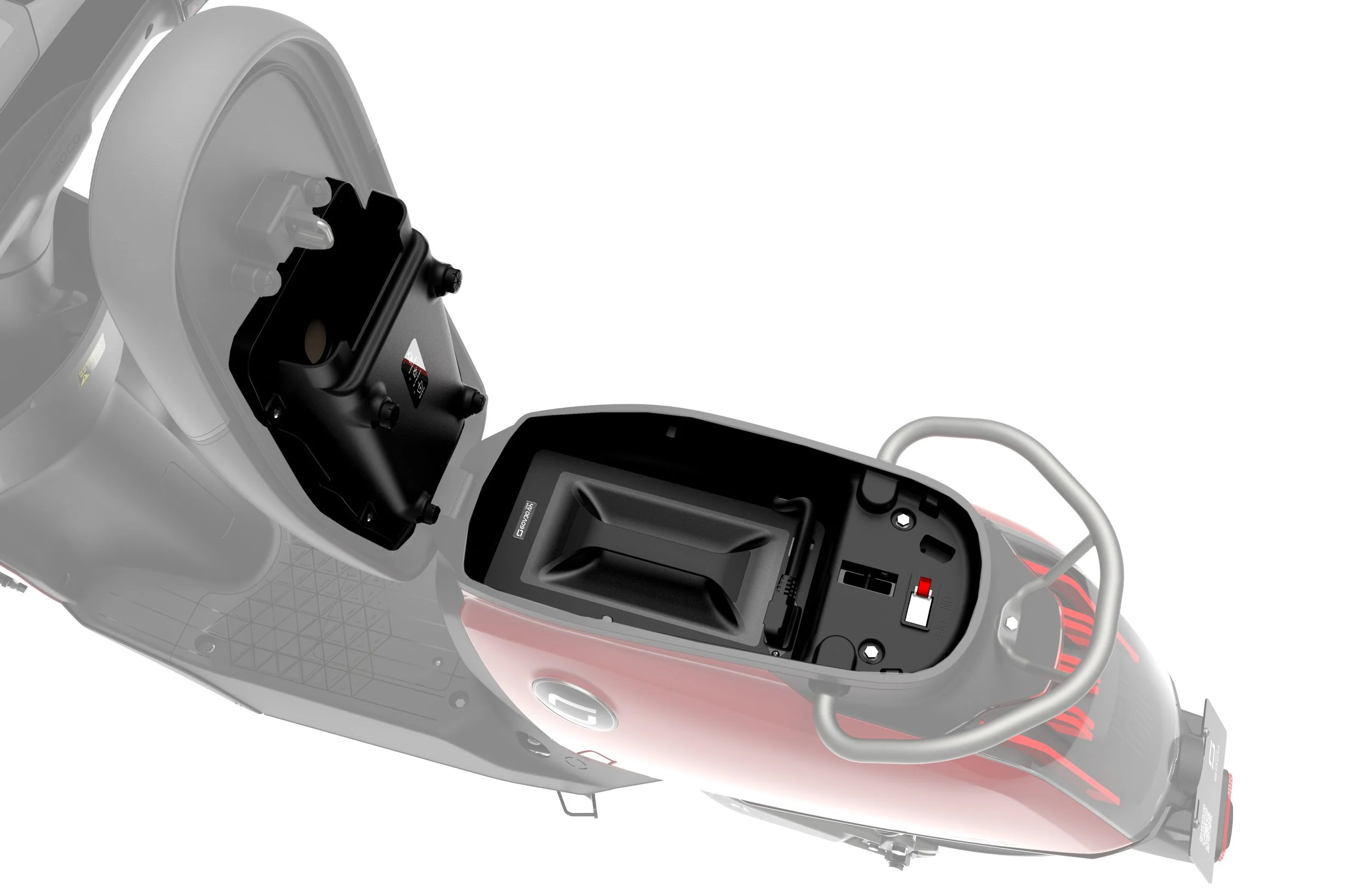 ....Användarvänlig design. Smart isolerat utrymme för batteri och förvaringsutrymme under sätet för nycklar, plånbok, mobiltelefon med mera.